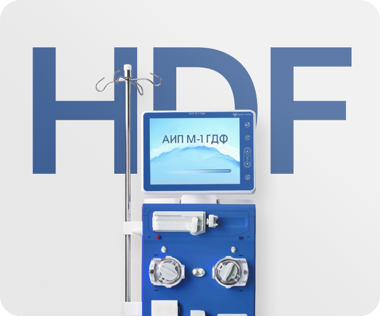 Аппарат искусственной почки АИП М-1 обеспечивает проведение современной онлайн-гемодиафильтрации (ГДФ) — комбинированной технологии, которая объединяет преимущества диффузии (как в стандартном ГД) и конвекции. Это позволяет эффективно удалять не только мелкие, но и средние и крупные молекулы (β2-микроглобулин, фосфаты), что значительно снижает риск долгосрочных осложнений у пациентов. Аппарат поддерживает поток замещающего раствора до 650 мл/мин и автоматически готовит стерильный раствор, не требуя внешних источников.
